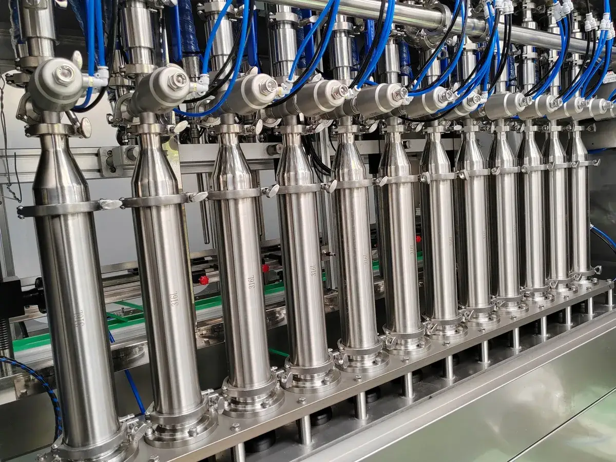 - Piston and filling nozzles are made by 304L/316 stainless steel. The seals are corrosion resistant, adaptable to various liquids. The whole filling equipment complies with GMP sanitary standards.