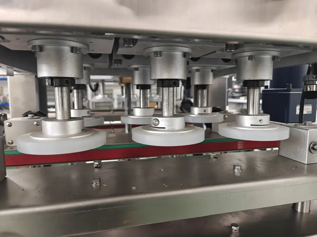6 Capping WheelsA six-spindle flexible capping system featuring independent drives and precise speed regulation. It facilitates smooth multi-directional cap entry and utilizes soft-touch protection to ensure zero damage to cap surfaces. The system accommodates various specifications through flexible height and spacing adjustments, delivering a highly stable and compatible capping experience.