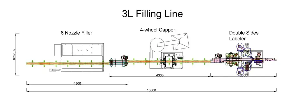 - Solution: A synchronized packaging production line featuring a 6-Head Filler, Cap Elevator, 4-Wheel Capper, Aluminum Foil Sealer, and Double-sided Labeler.